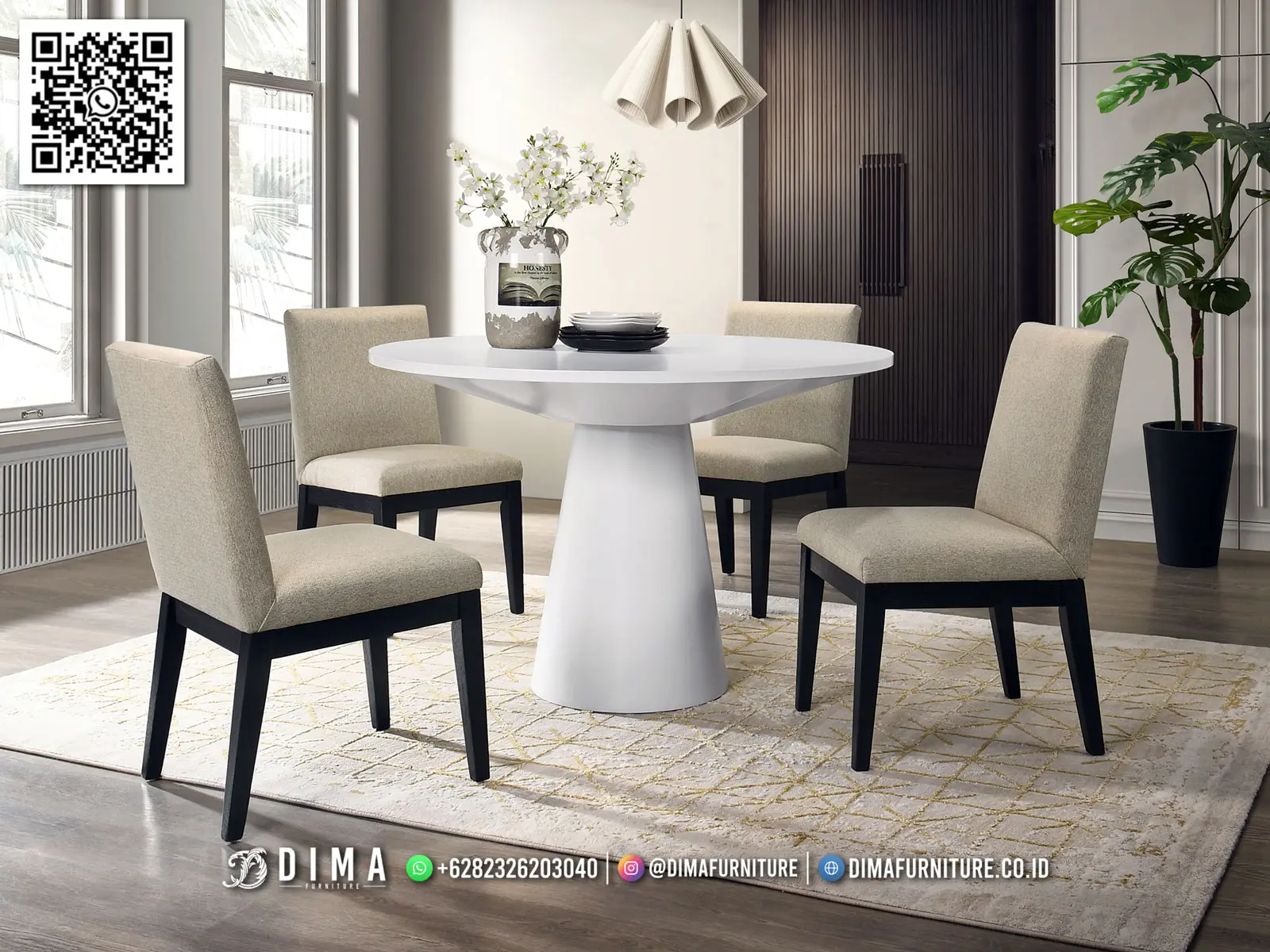 Meja makan minimalis sangat fleksibel dan mudah disesuaikan dengan berbagai gaya interior, mulai dari modern, skandinavia, hingga industrial. Pilihan warna netral seperti putih, cokelat kayu, atau hitam menjadikannya mudah dipadukan dengan dekorasi ruangan lainnya.