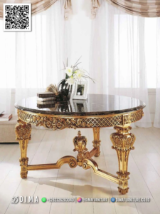 Ingin menambahkan sentuhan berkelas di ruang tamu Anda? Meja foyer ukir ini bisa jadi pilihan yang tepat. Desainnya yang megah dengan detail ukiran yang sangat rumit dijamin akan langsung mencuri perhatian. Meja ini bukan hanya sekadar perabotan, melainkan sebuah karya seni yang bisa membuat ruangan Anda terasa lebih premium. Perpaduan warna emas yang berkilau dan permukaan marmer hitam yang solid menciptakan kontras yang sangat elegan dan modern, cocok untuk berbagai gaya interior, terutama klasik dan kontemporer.