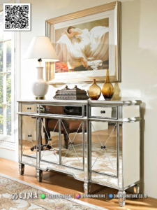 Meja konsol cermin vienna silver menghadirkan nuansa klasik modern dengan finishing elegan, cocok untuk mempercantik ruang tamu anda.