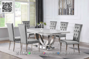 Meja Makan Marble Putih Stainless Eksklusif Elegan 117TTJ
