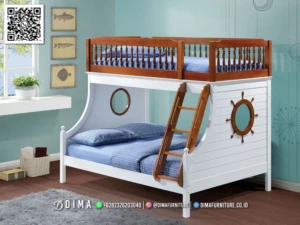 Tempat tidur tingkat anak minimalis carter best dirancang untuk kebutuhan kamar anak yang ingin tetap rapi tanpa mengorbankan kenyamanan. Model ini mengusung konsep tempat tidur tingkat minimalis dengan desain sederhana dan warna netral, sehingga mudah dipadukan dengan berbagai tema kamar, termasuk gaya modern atau nautical.